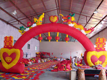婚庆气模红色幸福花门...